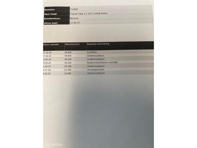 - Onderhoudshistorie aanwezig: Ja
