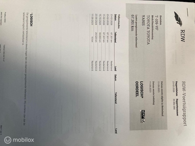 Kilometerstand gecontroleerd