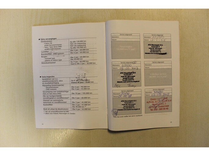 Onderhoudsboekjes: Aanwezig