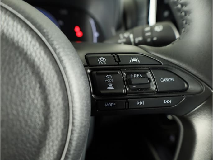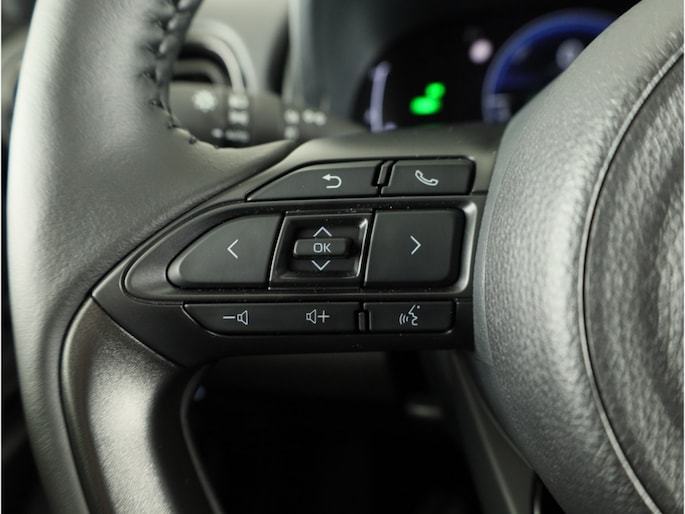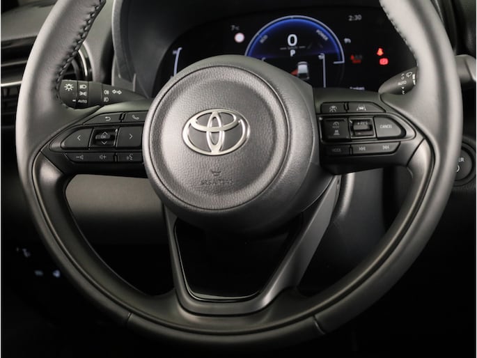 Het digitale dashboard in deze auto maakt personalisatie van jouw cockpitinterface mogelijk. Met de achteruitrijcamera zie jij wat er achter de auto gebeurt. Zo rij je moeiteloos achteruit. Adaptive cruise control houdt de ingestelde snelheid vast en houdt automatisch afstand tot jouw voorligger. Deze Toyota Yaris is voorzien van remote services. Via je smartphone bedien je diverse functies ook op afstand en krijgt je informatie over de status van je auto. Deze auto kent elke bestemming als z'n broekzak, dankzij het full map navigatiesysteem. Ook is de Toyota uitgerust met: automatische airconditioning, DAB ontvangst, regensensor, keyless entry, buitentemperatuurmeter en automatisch dimmende binnenspiegel.