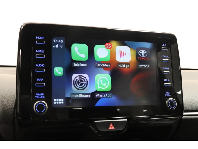 Stel de interface voor uw cockpit naar wens in met het digitale dashboard van deze auto. Parkeer en kijk niet om! De achteruitrijcamera doet dat voor u. Adaptive cruise control is een comfortabele en veilige optie. Het systeem reguleert de snelheid en houdt automatisch afstand tot uw voorligger. De jeugd is niet los te maken van hun smartphone, en dat zie je ook aan deze jonge auto. Via een speciale app staat u overal en altijd in contact met uw vierwieler. Superhandig! Het full map navigatiesysteem brengt u soepel en vlot naar uw bestemming. Met automatische airconditioning, draadloos opladen, DAB ontvangst, regensensor, keyless entry en lederen stuur is deze Toyota helemaal compleet.