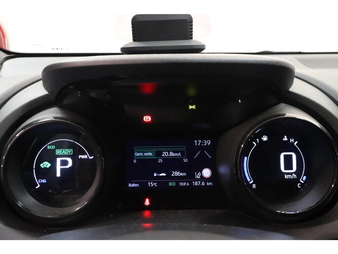 Zoals u mag verwachten van deze Toyota Yaris is hij uitgerust met een reeks aan actieve veiligheidssystemen. Onderweg zorgt verkeersborddetectie ervoor dat u geen waarschuwingsbord mist. Een camera houdt de juiste koers binnen de rijstrook in de gaten en het Lane-keeping systeem corrigeert bij afwijkingen. Verder is deze auto uitgerust met dodehoekdetectie, hill hold functie, frontale botsbescherming en bandenspanningcontrolesysteem.