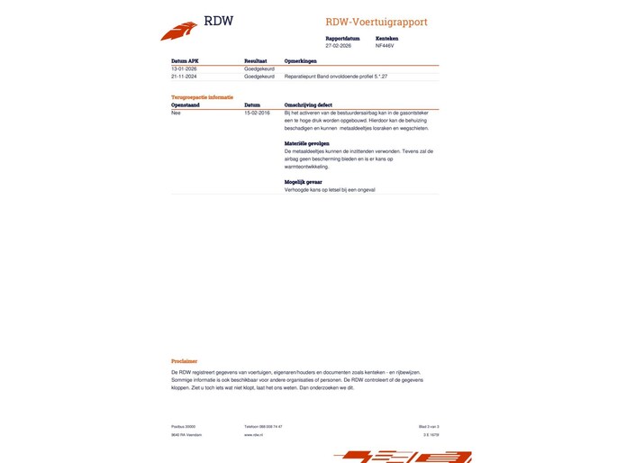 Kilometerstand gecontroleerd