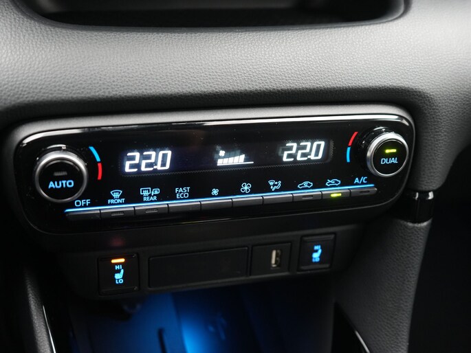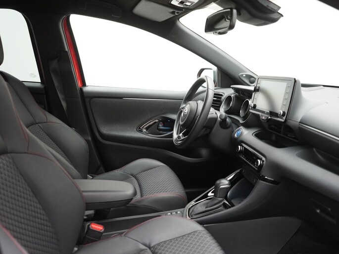 Betrouwbaar in kwaliteit, een topper in rijprestaties en qua conditie in blakende vorm. Deze Toyota Yaris staat voor u klaar! De benzinemotor koppelt soepele prestaties aan een gunstig brandstofverbruik. Bestuurder en bijrijder krijgen een warm welkom: deze Toyota Yaris is voorzien van verwarmbare voorstoelen. Natuurlijk zijn de sportstoelen super functioneel als het rechterpedaal ingetrapt wordt. Maar ook voor het uiterlijk doen ze veel! Bij de zeer complete uitrusting van deze auto behoren ook 17 inch lichtmetalen velgen, LED koplampen, halflederen bekleding, dakspoiler, donker getint glas achter en in delen neerklapbare achterbank.