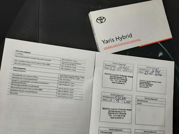 Optioneel afleverpakket (zonder meerprijs): Toyota Approved: • 12 maanden "Toyota approved" garantie (Tot 10 jaar verlengbaar*) • 24/7 Pechhulp Europa dekking • Garantiedekking heel NL • 14 dagen tot max. 1000 KM omruilgarantie • Tenaamstelling/vrijwaring • Reiniging in- & exterieur • Hybride Zekerheid Controle • Toyota kwaliteitschecklist • Gecontroleerde KM-stand • Vloeistoffencheck & bijvullen • Poetsbeurt • Onderhoud conform schema • Nieuwe APK • Gratis vervangend vervoer Ja** *Informeer naar de geldende voorwaarden **Bij reparaties die langer dan 24 uur duren. Gratis vervangend vervoer kent een maximale duur van 72 uur.