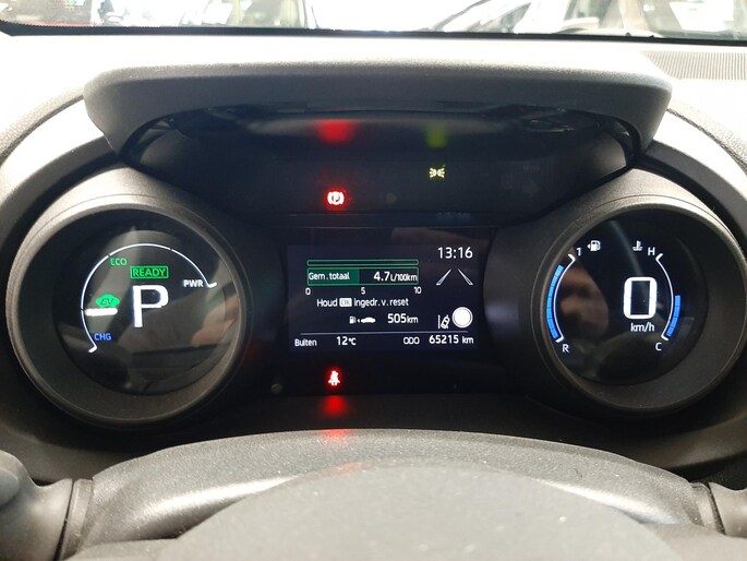 Pragmatisch en veilig als deze auto is, beschikt hij over diverse veiligheidssystemen. In het instrumentarium kun je bovendien de verkeersborden zien die je onderweg tegenkomt. Zo helpt deze Toyota jou om veiliger te rijden. Onbedoeld buiten de rijstrook raken wordt voorkomen door het Lane-keeping systeem. Forward collision warning helpt je om kop-staart aanrijdingen te voorkomen. De veiligheid van deze auto wordt verder verhoogd door nachtzichtassistentie, hill hold functie, brake assist en bandenspanningcontrolesysteem.