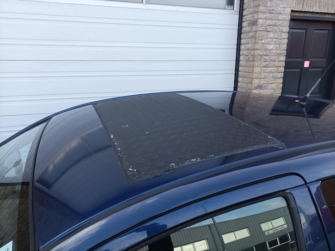 Uiteraard wel gebruikerssporen, open dak dichtgemaakt, leren bekleding is gescheurd vandaar de stoelhoezen, airco heeft aandacht nodig en de radio doet het niet.