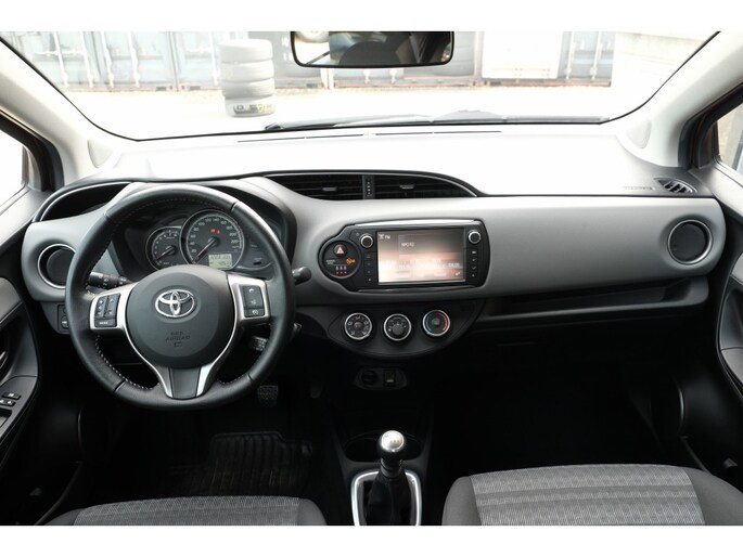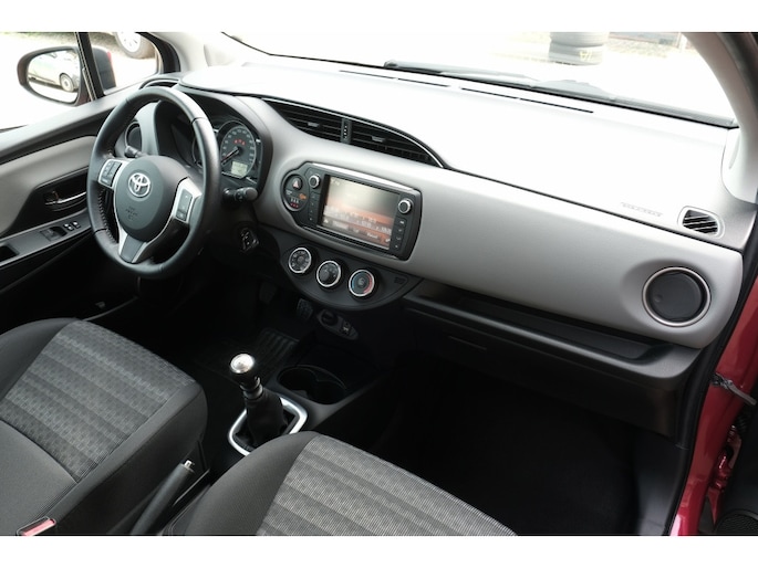 TOYOTA YARIS 1.3 VVT-i Aspiration | 15” stalen velgen met wieldoppen en 175/65R15 banden (niet op 1.0 VVT-i)|verwarmde buitenspiegels|lederen stuurwiel|audio- en telefoonbediening op het stuurwiel|soft touch delen deuren vóór en dashboard|Toyota Touch®2 multimediasysteem met 7” touch screen (CD-speler vervalt)|Bluetooth®|iPod-aansluiting|parkeerhulpcamera achter (met hulplijnen) en Cruise control met snelheidsbegrenzer (alleen op 1.3 VVT-i) | buitenspiegels met geïntegreerde richtingaanwijzer|LED dagrijverlichting|sierlijst achter in kleur|centrale vergrendeling|in hoogte verstelbare bestuurdersstoel|in 2 delen neerklapbare achterbank|‘Follow me home’ verlichting|in hoogte en diepte verstelbaar stuurwiel|audiobediening op het stuurwiel|6 speakers|elektrisch bedienbare ramen vóór|elektrische stuurbekrachtiging|Optitron instrumentenpaneel|Stop & Start-systeem (niet op 1.4 D-4D-F)|schakelindicator|boordcomputer|antiwhiplash hoofdsteunen vóór|ABS|EBD en Brake assist|schijfremmen vóór|VSC en TRC|bestuurders- en passagiersairbag|side airbags|curtain airbags|knie airbag|bandenspanningcontrolesysteem en bandenreparatieset | Buitenspiegels in kleur en elektrisch verstelbaar|deurgrepen in kleur|centrale vergrendeling met afstandsbediening|handbediende airconditioning|radio/CD-speler met MP3-/ USB-aansluiting|toerenteller en lederen pookknop (15” stalen velgen met wieldoppen en 175/65R15 banden op 1.4 D-4D-F Now) | Tot 10 jaar garantie |