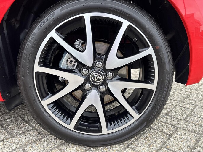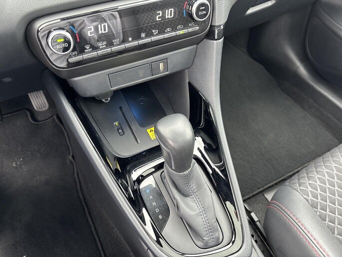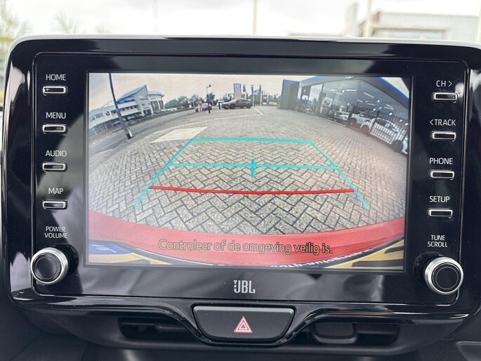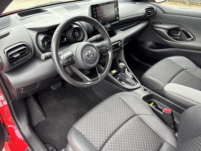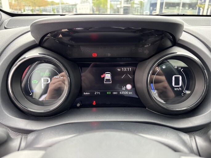 Natuurlijk brengt het digitale dashboard alle ritinformatie perfect in beeld. Maar ook communicatie, navigatie en tal van andere functies zijn permanent te volgen. De achteruitrijcamera brengt precies in zicht wat zich achter u bevindt en toont een glashelder beeld op hoge resolutie. Een geluidssignaal waarschuwt hoeveel ruimte u nog heeft. Adaptive cruise control houdt de ingestelde snelheid vast en houdt automatisch afstand tot uw voorligger. Deze Toyota Yaris is voorzien van remote services. Via uw smartphone bedient u diverse functies ook op afstand en krijgt u informatie over de status van uw auto. De electronic climate control zorgt voor een prettige binnentemperatuur. De uitrusting van deze auto is met draadloos opladen, DAB ontvangst, regensensor, keyless entry, automatisch dimmende binnenspiegel en lederen stuur behoorlijk compleet.