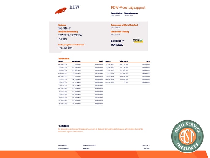 Kilometerstand gecontroleerd