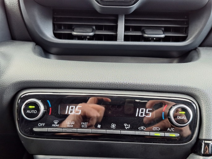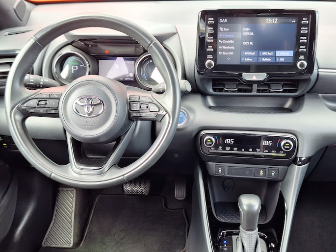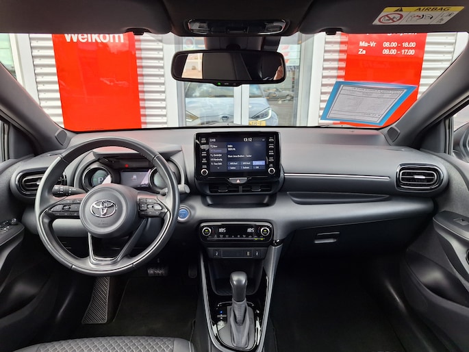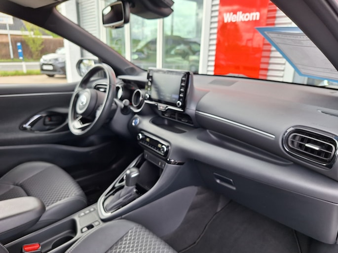 Zoals u mag verwachten van deze Toyota Yaris is hij uitgerust met een reeks aan actieve veiligheidssystemen. Belangrijk voor uw veiligheid en die van uw passagiers is de verkeersbord-detectie in deze auto. Een camera houdt de juiste koers binnen de rijstrook in de gaten en het Lane-keeping systeem corrigeert bij afwijkingen. In een noodsituatie waarschuwt forward collision warning bij een dreigende aanrijding met een voorligger. Met voorzieningen als hill hold functie, autonoom remsysteem en bandenspanningcontrolesysteem, bent u altijd veilig onderweg.