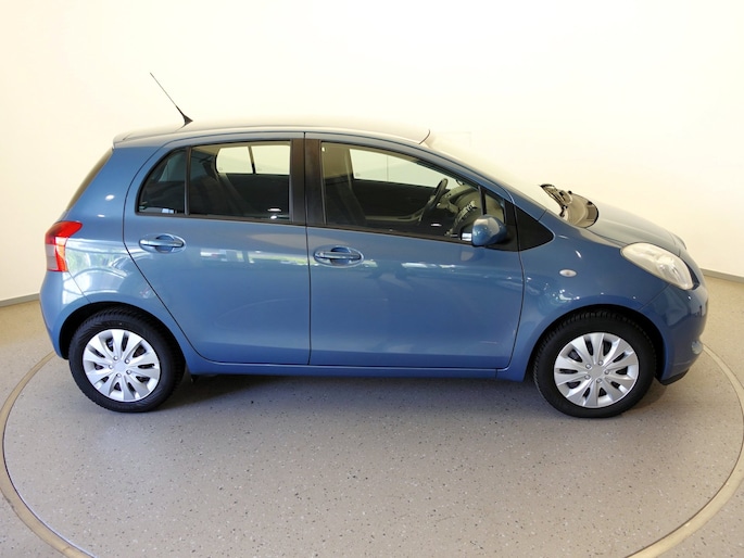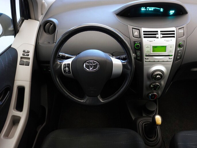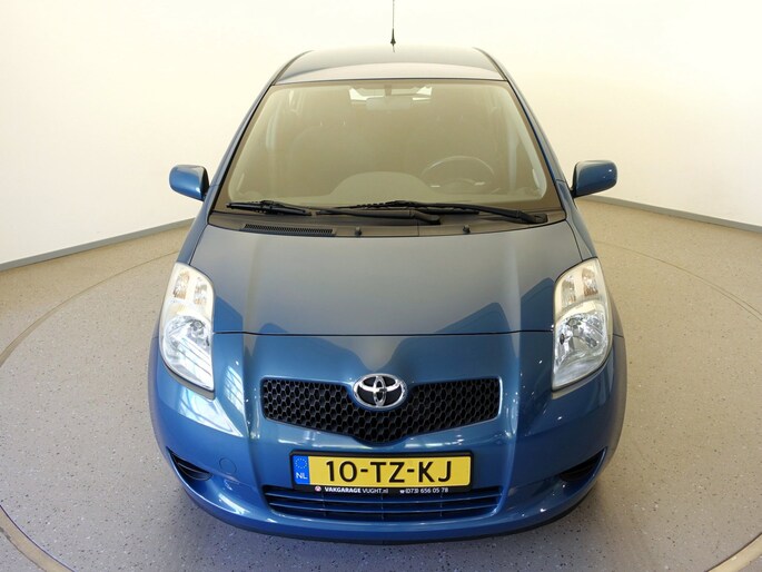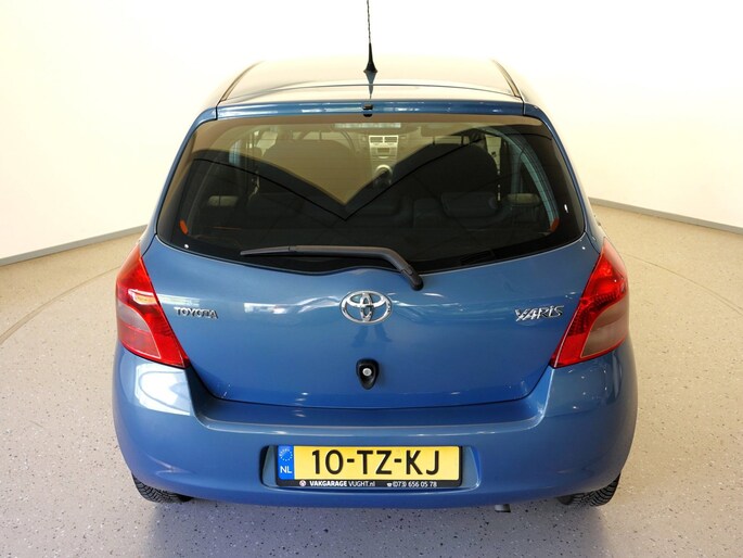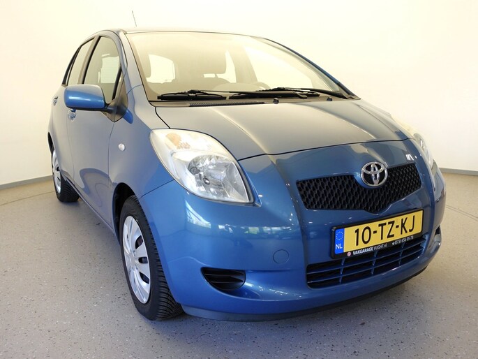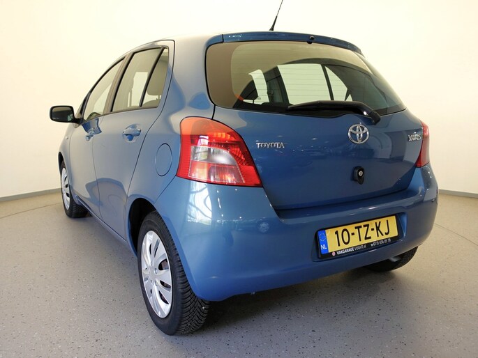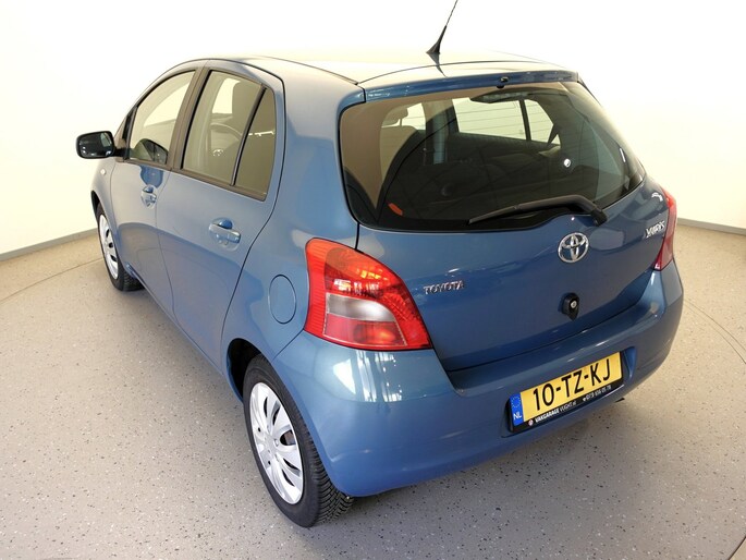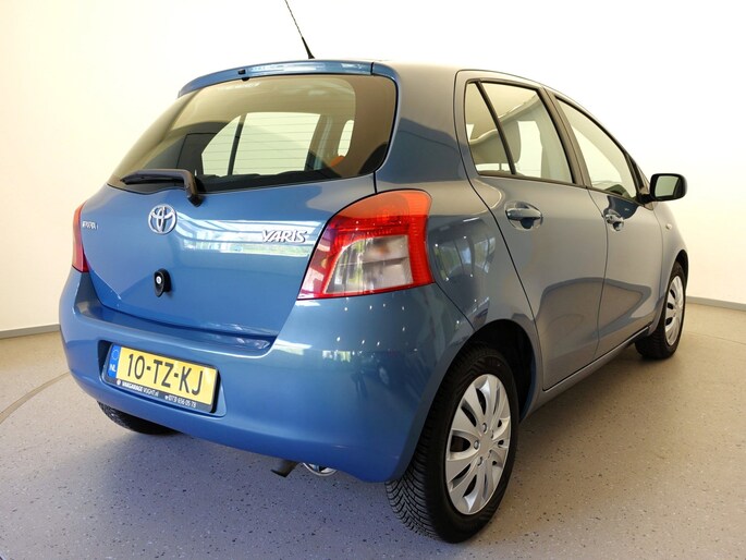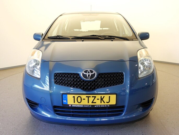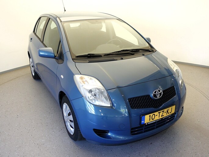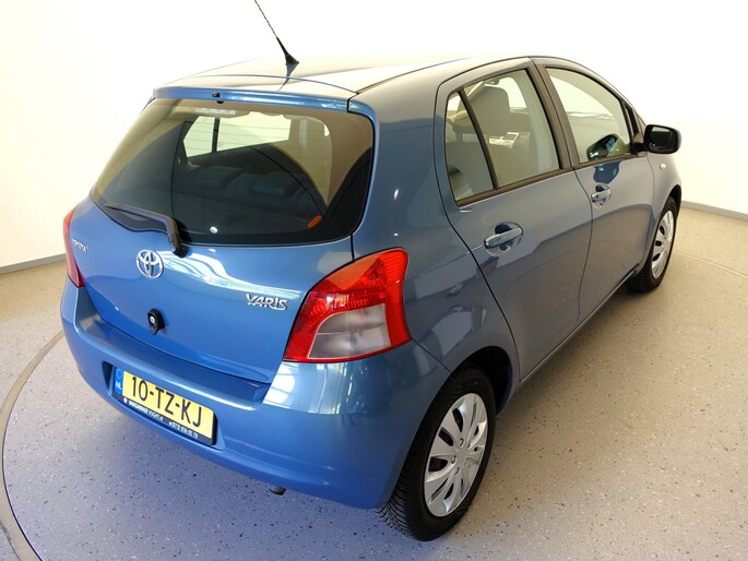 Mooie en ook erg praktische TOYOTA YARIS 5-deurs met de 87pk sterke en zeer betrouwbare 1.3-16V VVT-i benzinemotor in de luxere "Linea Sol"-uitvoering met o.a. airco, originele radio/CD/MP3-speler met stuurbediening, in hoogte verstelbare bestuurdersstoel, in hoogte en lengte verstelbaar lederen stuurwiel, niet alleen in delen neerklapbare maar òòk verschuifbare achterbank, elektrisch verstelbare en verwarmbare buitenspiegels, afstandsbediende centrale deurvergrendeling, elektrisch bediende voorportierruiten, zeer goede VREDESTEIN QUATRAC All-Seasonbanden: 15-inch, metallic-lak: "Bayou Blue", etc.