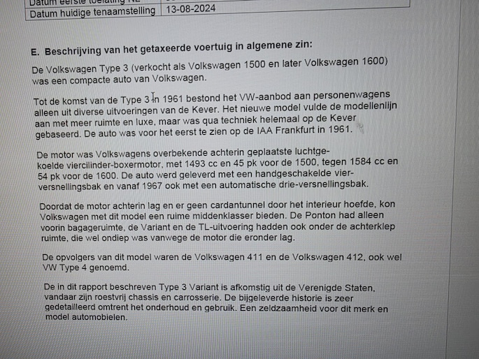 Een type 3 met 1600 motor, Squareback zeggen de Amerikanen, Variant zeggen wij hier. Ingeruild wegens einde hobby, en van A tot Z gedocumenteerd, zoals ik ze graag heb. Maar mijn collectie wprdt te groot, ik rij te weinig en ik gun deze pracht auto aan een liefhebber.