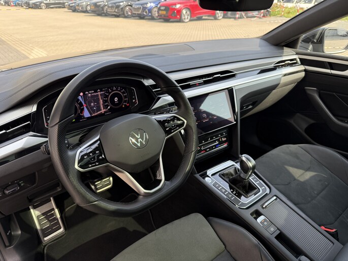 Dankzij hoogwaardige techniek en verschillende veiligheidssystemen, biedt deze Volkswagen Arteon Shooting Brake je optimale veiligheid en comfort tijdens iedere rit. Van binnen en van buiten is deze Volkswagen Arteon Shooting Brake uitgevoerd in R-Line styling. Sportief, stoer, eigenwijs. Volkswagen-rijders weten het: een VW is gebouwd voor duurzaamheid en deze Arteon Shooting Brake ziet er dan ook uit als nieuw. De hybride motor combineert het gebruik van brandstof en elektriciteit, en dat maakt van deze Volkswagen Arteon Shooting Brake een zuinige, slimme auto. Doe maar luxe! Neem plaats in de verwarmbare voorstoelen en voel de weldaad in koude dagen. Ontspannen rijden begint met de juiste zit. Daar zorgen de comfortstoelen wel voor. Daglicht valt vrij binnen door het elektrisch bediende glazen panoramadak. Een handige voorziening op deze auto is de elektrische achterklep die je op afstand kunt openen. Ook achterin is iedereen snel op temperatuur door de verwarmde achterbank. Verder is de Volkswagen uitgerust met: 19 inch lichtmetalen velgen, LED-koplampen, warmtewerend glas, in delen neerklapbare achterbank, LED-achterlichten en verstelbare lendensteunen.