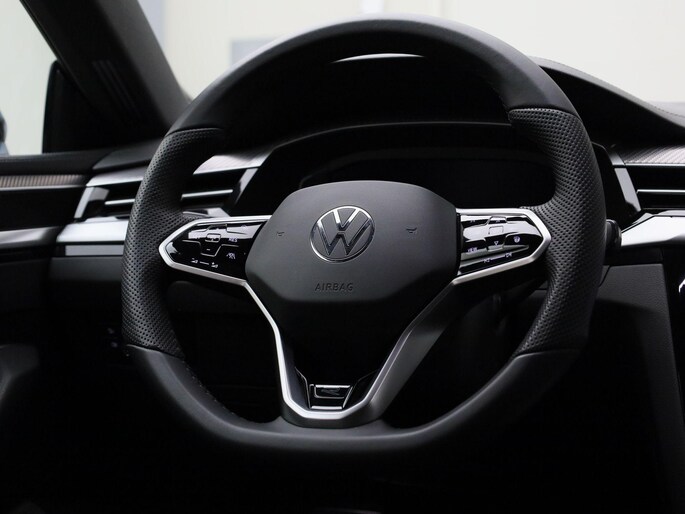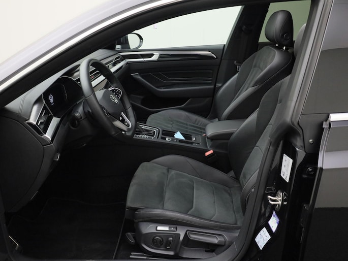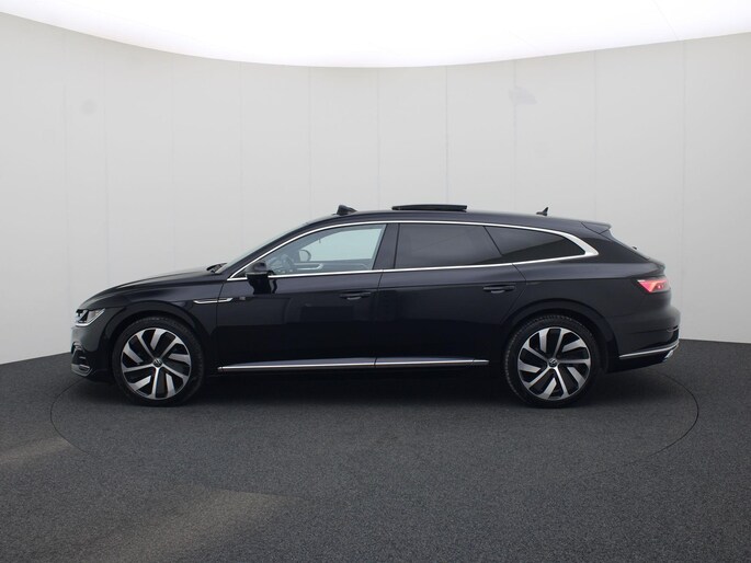 Stijlvol en veelzijdig, dat zijn misschien wel de belangrijkste kenmerken van de Volkswagen Arteon Shooting Brake. Dit exemplaar is bovendien voorzien van verschillende systemen die het autorijden aangenamer en veiliger maken. Het interieur heeft een sportieve en hightech ambiance dankzij de R-Line styling. Volkswagen-rijders weten het: een VW is gebouwd voor duurzaamheid en deze Arteon Shooting Brake ziet er dan ook uit als nieuw. Zeer laag in brandstofverbruik, hoog in prestaties: deze hybride auto combineert een verbrandingsmotor en een elektromotor. Boven uw hoofd schuiven de wolken zichtbaar voorbij door het elektrisch bediende glazen panorama dak. En kijk eens aan de achterzijde wat gemakkelijk: een eveneens elektrisch bedienbare achterklep! Zelfs op de koudste dagen zorgen de stoelverwarming met massagefunctie, stuurverwarming en verwarmbare achterbank voor een comfortabele rijervaring. De comfortstoelen zorgen dat u na iedere rit fit uitstapt. Tot de uitrusting van deze Volkswagen behoren ook 19 inch lichtmetalen velgen, LED-koplampen, adaptief dempingsysteem, warmtewerend glas, in delen neerklapbare achterbank en LED-achterlichten.