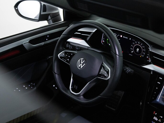 Dynamische styling, zorgvuldig afgewerkt met fraaie materialen en ontworpen met oog voor detail. De Volkswagen Arteon is van binnen en van buiten een toonbeeld van Duits design. De R-Line styling geeft deze Volkswagen Arteon een aantrekkelijke meerwaarde en rijden wordt een feestje! Zoals het een echte Volkswagen betaamt, verkeert deze Arteon in uitstekende conditie. De hybride combi van een verbrandingsmotor en een elektromotor zorgt voor zeer laag brandstofverbruik en veel minder uitstoot. Misschien val je voor het lederen interieur. Maar wat een licht van binnen ook, dankzij het elektrisch bediende glazen panorama dak; en niet te vergeten het grote gemak van een elektrisch bedienbare achterklep. De verwarmbare achterbank maakt het net zo comfortabel voor passagiers als de stoelverwarming met massagefunctie en stuurverwarming het doet voor de bestuurder. Ziet er goed uit, die sportstoelen. Maar waar het om gaat, is de solide zit onder alle omstandigheden. Tot de uitrusting van deze Volkswagen behoren ook 19 inch lichtmetalen velgen, LED-koplampen, warmtewerend glas, in delen neerklapbare achterbank, LED-achterlichten en verstelbare lendensteunen.