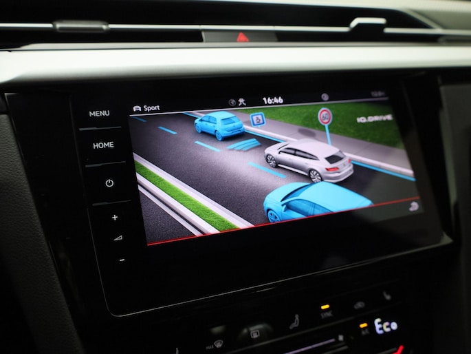 Elektronische veiligheidsvoorzieningen helpen u onderweg om de situatie op de weg te beoordelen. Deze systemen waarschuwen u als er een riskante situatie ontstaat, en kunnen in bepaalde gevallen ook zelf ingrijpen. Dat de auto steeds meer taken van de bestuurder overneemt, merkt u bijvoorbeeld aan het systeem voor verkeersbord-detectie in deze Volkswagen. Indien u onbedoeld de rijstrook lijkt te verlaten, reageert het Lane-keeping systeem meteen en corrigeert. Het forward collision warning-systeem is constant alert en detecteert via sensor de afstand tot voorliggers. Wordt die te klein, dan volgt een automatische waarschuwing. De auto is ook uitgerust met dodehoekdetectie, front assist, hill hold functie, brake assist, vermoeidheidsherkenning en bandenspanningcontrolesysteem.