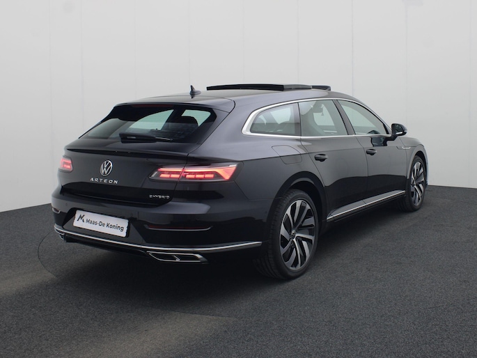 Het mag dan misschien het meest verkochte merk van Europa zijn, 'gewoon' is een Volkswagen nooit. Kijk maar naar deze Arteon Shooting Brake. Met zijn doordachte techniek, geweldige bouwkwaliteit en fantastische rijeigenschappen is deze auto absoluut niet alledaags. Maar u kunt er wel heel goed iedere dag opnieuw van genieten. Geen gemiddelde auto, dit. De R-Line styling maakt er een opvallend geheel van. Niet voor niets is de vraag naar gebruikte Volkswagens zo groot, want de kwaliteit staat ook na een aantal jaren nog buiten kijf, zoals aan deze Arteon Shooting Brake duidelijk te zien is. Elektrisch rijden of toch benzine? Voor allebei is iets te zeggen. Daarom biedt de hybride motor van deze Volkswagen Arteon Shooting Brake de keus. Dak dicht? Dan toch volop daglicht door het elektrisch bediende glazen panorama dak. Het lederen interieur ademt luxe en de elektrisch bedienbare achterklep biedt volop gemak. Ga samen met uw bijrijder lekker zitten in de verwarmbare voorstoelen en laat jullie bloedsomloop stimuleren door de massagefunctie. De sportstoelen houden u en uw passagier stevig vast tijdens een snelle rit, maar bieden ook altijd comfortabele ondersteuning. In de winter wil iedereen mee. Zou dat komen door de verwarmde achterbank? De koplampen met matrix LED-verlichting zijn het hoogst haalbare op het gebied van autoverlichting. Bij de uitrusting van deze auto horen onder meer 19 inch lichtmetalen velgen, adaptief dempingsysteem, warmtewerend glas, in delen neerklapbare achterbank, LED-achterlichten en verstelbare lendensteunen.