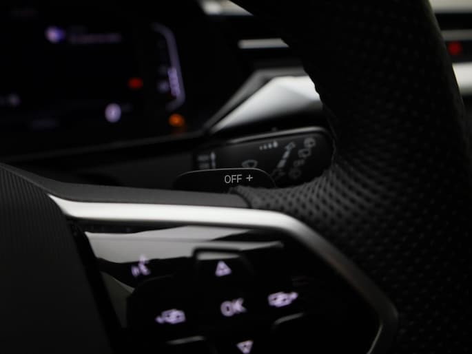 Alle benodigde informatie helder in beeld: het digitale dashboard is een geweldige rijhulp. De 360 graden camera op deze auto biedt u een volledig, panoramisch zicht op de omgeving. Als u de adaptive cruise control inschakelt, regelt de auto zelf de snelheid en de afstand tot de auto voor u. De ingebouwde file assistent is een echte helper als het vaststaat onderweg. Het systeem meet ruimte tot de auto vóór u permanent en activeert zelfs de remmen als uw voorligger stopt. Handig en veilig: Connected Services. Alle vitale functies en data van de auto checkt u via de app op uw smartphone. Wat u ook in deze auto kunt vinden zijn dashboard met spraakbediening, full map navigatiesysteem, automatische airconditioning, sportstuur met schakelpaddels, draadloos opladen en DAB ontvangst.