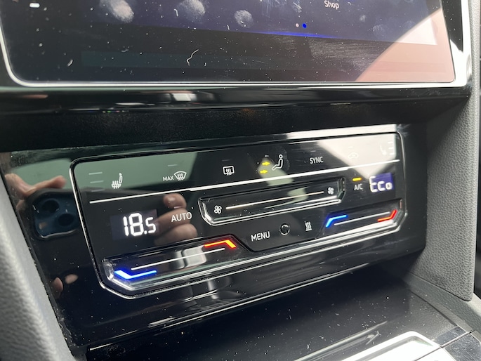 1.4 TSI eHybrid 2x R-Line / AUTOMAAT/ PANO/ TREKHAAK/ 360 CAMERA/ DCC/ CARBON/ HEAD-UP DISPLAY/ LEDEREN MEMORY SEATS/ DODE HOEK/ KEYELSS/ APP CONNECT/ ADAPT. CRUISE/ STOELVERWARM. V & A/ NAVI/ CLIMA/ DAB/ 19" LMV