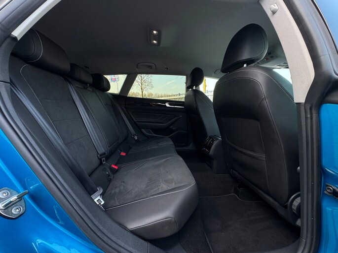 Zeer nette en luxe uitgevoerde **Volkswagen Arteon 1.4 TSI eHybrid Elegance**. Met zijn prachtige **blauwe kleur**, stijlvolle **chrome en zwarte accenten** en indrukwekkende **19 inch lichtmetalen sportvelgen** is deze stationwagen een echte **eyecatcher** op de weg.
