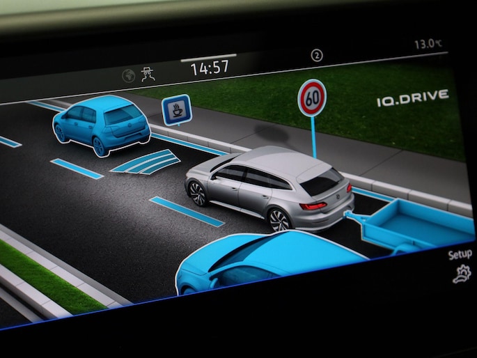 Alle functies die u onderweg nodig heeft, worden permanent geregistreerd en zijn afleesbaar op het digitale dashboard. Kom maar, kom maar, kom maar... ho! Prettig hoor, zo'n achteruitrijcamera. Met adaptive cruise control houdt deze auto automatisch afstand tot uw voorligger. Filerijden zal nooit een pretje worden. Maar met de file assistent wordt het wél relaxter. Deze geavanceerde optie zorgt dat u automatisch de juiste afstand tot de voorligger houdt en remt bovendien als de rij tot stilstand komt. Ingebouwde spraakbediening maakt het mogelijk om de auto te bedienen zonder dat uw aandacht wordt afgeleid. Ook is de Volkswagen uitgerust met: connected drive services, navigatiesysteem, automatische airconditioning, sportstuur met schakelpaddels, draadloos opladen en DAB ontvangst.
