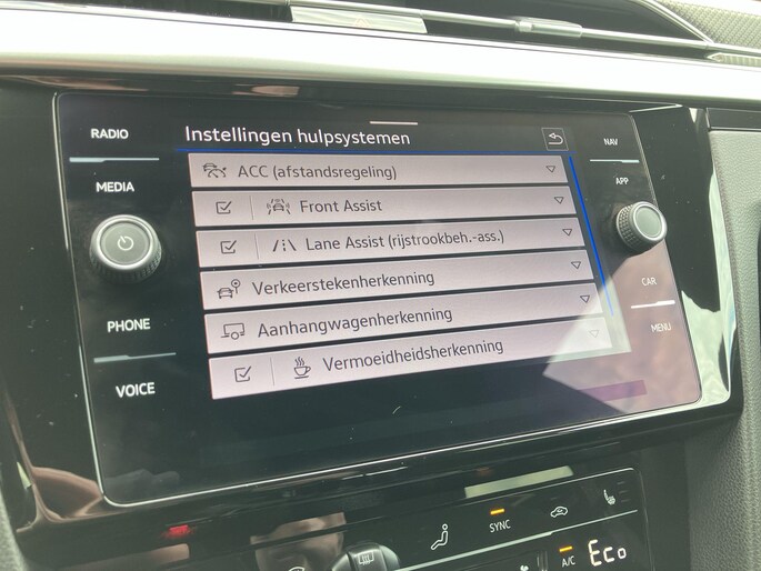 Als bestuurder van deze Volkswagen bent u nooit alleen. U wordt onderweg bijgestaan door technologische hulpmiddelen die samen met u de weg in de gaten houden. Als het nodig is, grijpen ze zelfs in, door te remmen of bij te sturen. De camera van de verkeersborddetectie herkent verschillende soorten verkeersborden en toont deze op het dashboard. Het Lane-keeping systeem doet precies wat nodig is: waarschuwen en corrigeren bij onbedoelde overschrijding van de rijstrooklijnen. Forward collision warning waarschuwt voor een kop-staart botsing. Bovenop deze veiligheidsfeatures heeft deze Volkswagen bovendien front assist, hill hold functie, brake assist, vermoeidheidsherkenning en bandenspanningcontrolesysteem.