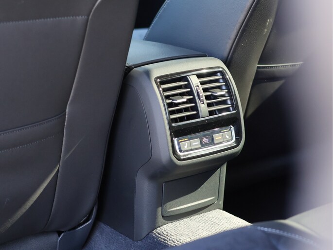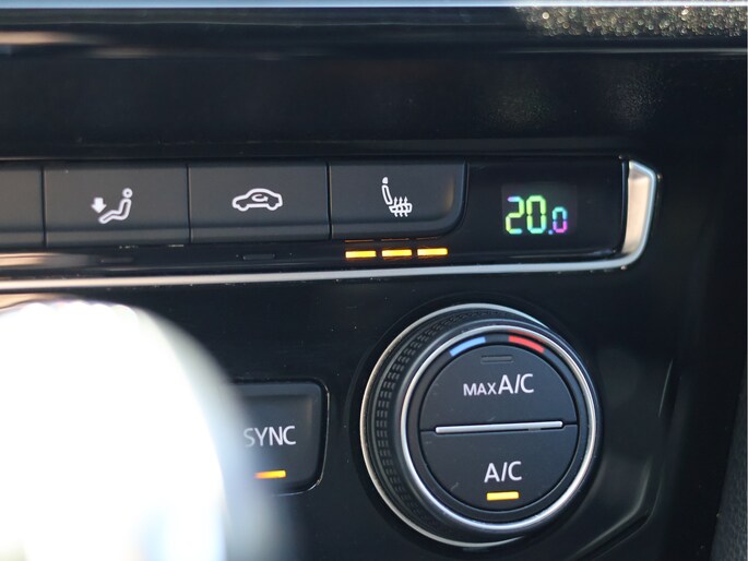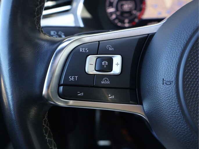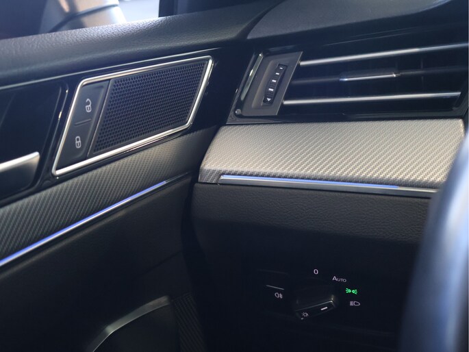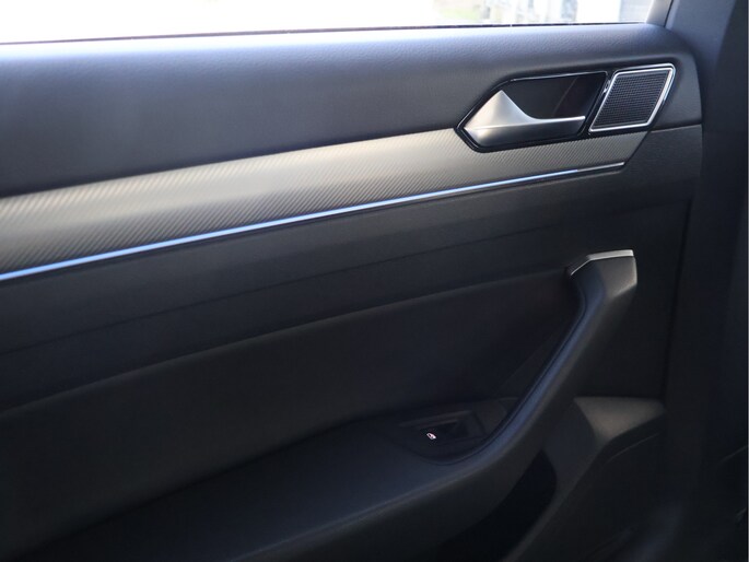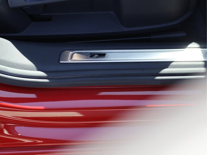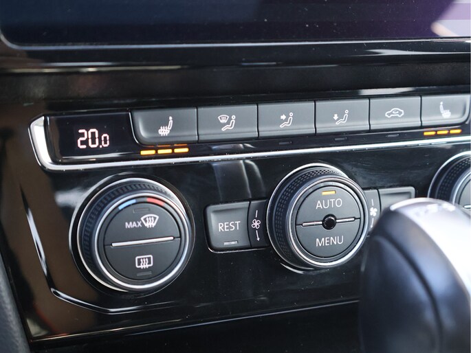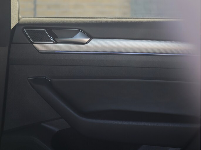 Stap in en u merkt direct dat ook het interieur volledig in lijn ligt met die gedachte. Het R-Line interieur combineert half leder met alcantara, sportstoelen die perfect ondersteunen en een lederen multifunctioneel sportstuur dat heerlijk in de hand ligt. De zwarte hemelbekleding en aluminium accenten zorgen voor een cockpitgevoel waarin u zich direct thuis voelt. Tegelijkertijd blijft het comfort op hoog niveau, met stoelverwarming vóór én achter en een 3-zone climate control die iedere inzittende zijn eigen ideale temperatuur biedt.