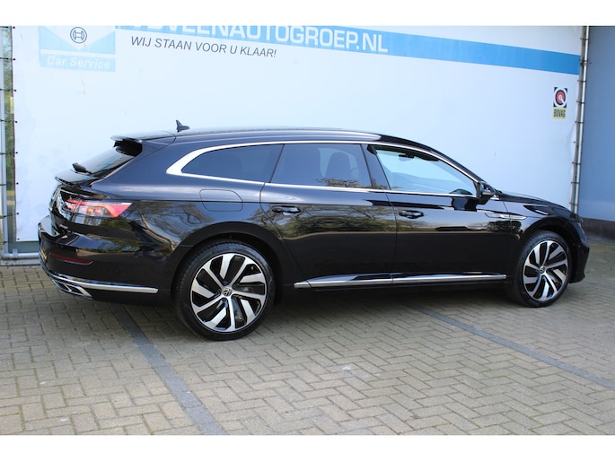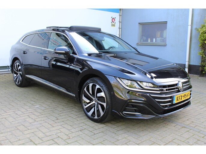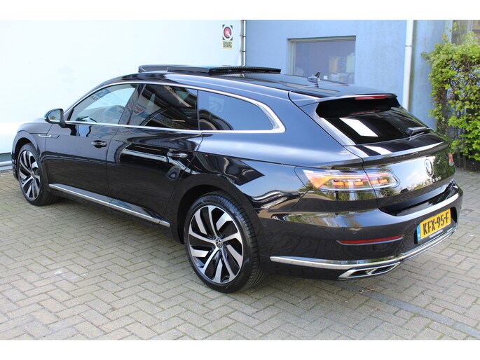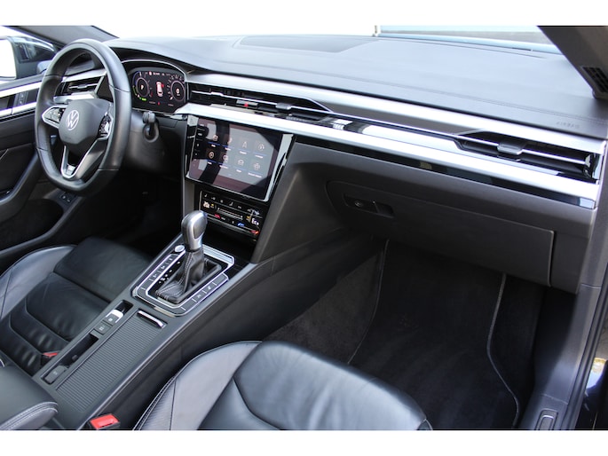 Duitse auto's blijven onveranderd vertegenwoordigd in de top van wereldmerken. En dat is geen toeval. De R-Line styling heeft deze Volkswagen Arteon Shooting Brake omgetoverd tot een regelrecht plaatje! Niet voor niets is de vraag naar gebruikte Volkswagens zo groot, want de kwaliteit staat ook na een aantal jaren nog buiten kijf, zoals aan deze Arteon Shooting Brake duidelijk te zien is. De onderhoudshistorie van deze auto is bekend. Met zijn benzinemotor en automatische transmissie is dit een prima auto voor nog vele kilometers. De luxe van het lederen interieur, gecombineerd met het gemak van het elektrisch bediende glazen panorama dak en de superhandige elektrisch bedienbare achterklep zorgen voor een wel heel complete uitvoering. De verwarmbare voorstoelen inclusief massagefunctie benadrukken nog maar eens dat we hier te maken hebben met een regelrechte verwenauto. Mooi om te zien en heerlijk om in te zitten zijn de sportstoelen, die u onderweg optimale ondersteuning geven. Ook achterin is iedereen snel op temperatuur door de verwarmde achterbank. De koplampen zijn voorzien van de allernieuwste lichttechnologie: matrix LED-verlichting. Ook is de auto voorzien van: halflederen bekleding, adaptief dempingsysteem, warmtewerend glas, adaptief onderstel, zwarte hemelbekleding en in delen neerklapbare achterbank.