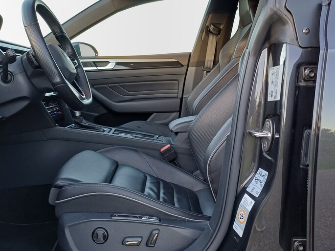 Let op! Trekhaak niet aanwezig. Kan geleverd en gemonteerd worden voor een meerprijs van Euro 875,-. Of u nu stadsritten maakt of langdurig op snelwegen bent, het rijden met de Volkswagen Arteon Shooting Brake is steeds een genoegen. Het onderstel biedt comfort en sportiviteit, het interieur is ruim en weldadig en deze auto heeft alle systemen aan boord om uw ritten zo veilig mogelijk te maken. Het oog wil ook wat. Daarom is deze Volkswagen Arteon Shooting Brake uitgevoerd in R-Line styling. Zoals het een echte Volkswagen betaamt, verkeert deze Arteon Shooting Brake in uitstekende conditie. De combinatie van een verbrandingsmotor en een elektromotor zorgt voor prima rij-eigenschappen en een laag brandstofverbruik. Houdt u van een luxe uitstraling? Dan is het lederen interieur een heel aantrekkelijke extra! Deze Volkswagen Arteon Shooting Brake legt bestuurder én bijrijder compleet in de watten met de verwarmbare voorstoelen. De sportstoelen zorgen voor een strak uiterlijk én een uitstekende zitsteun. De elektrische achterklep opent met een druk op de knop, zodat u gemakkelijk toegang heeft tot de bagageruimte. Met de verwarmbare achterbank zitten uw achterpassagiers er net zo behaaglijk bij als u. De koplampen met matrix LED-verlichting geven daglichtkwaliteit zonder tegenliggers te hinderen. Bij de zeer complete uitrusting van deze auto behoren ook 19 inch lichtmetalen velgen, adaptief dempingsysteem, warmtewerend glas, adaptief onderstel, in delen neerklapbare achterbank en LED-achterlichten.