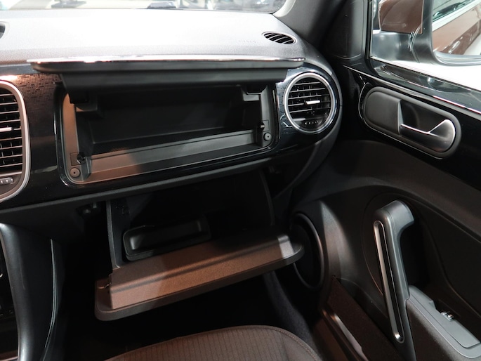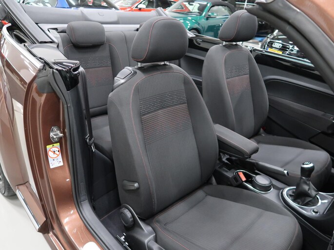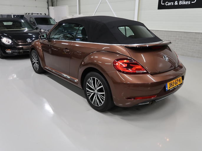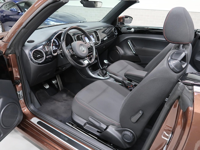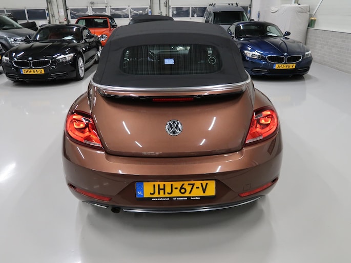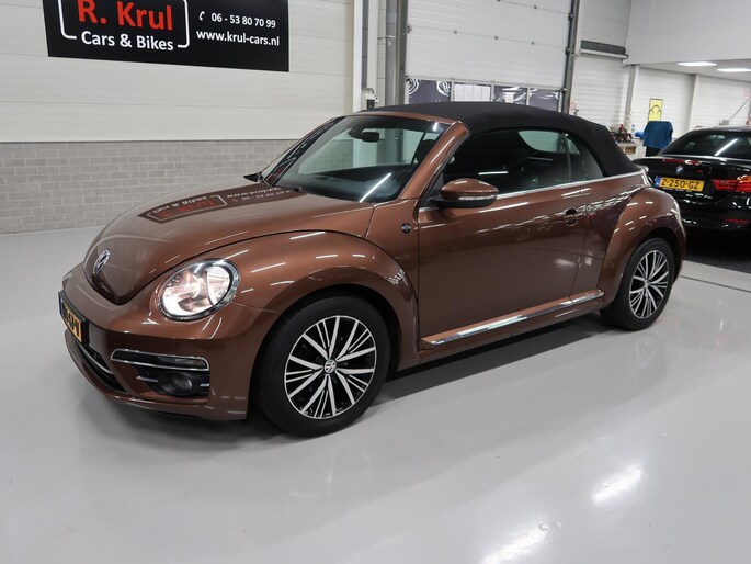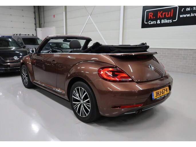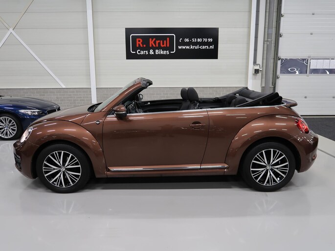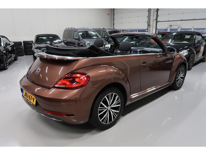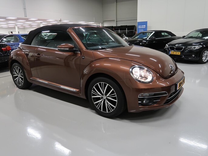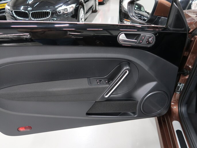 Van 1e eigenares, Vw dealer onderhouden, in zeer nette staat. Vw Beetle cabrio Sound in de kleur Dark Bronze metallic. Deze Beetle is o.a. uitgevoerd met Airco-ecc (electronic climate control, links/rechts digitaal instelbaar), volledig elektrische kap, stoelverwarming, Discover Media navigatie, parkeersensoren voor en achter, bluetooth voor telefoon en muziek, multifunctioneel stuurwiel, cruise control, windscherm, 17 inch sportvelgen, mistlampen voor, boordcomputer, chroompakket en groen getint warmtewerend glas. Tegen geringe meerprijs hebben we een set winterbanden op stalen velgen beschikbaar. Kijk voor alle 72 foto's op onze website. Altijd meer dan 25 cabrio's op voorraad waaronder 10 Vw Beetle's.