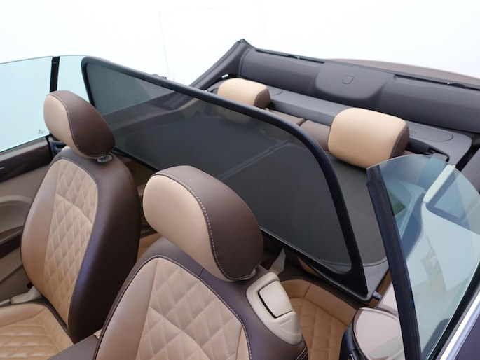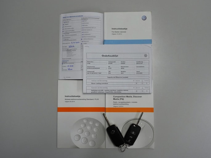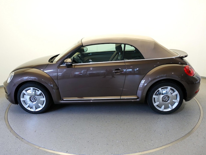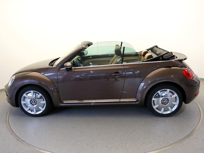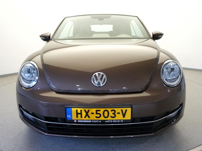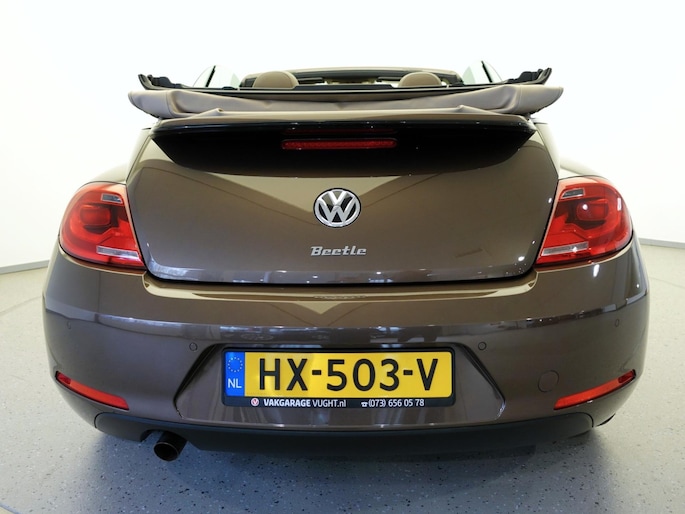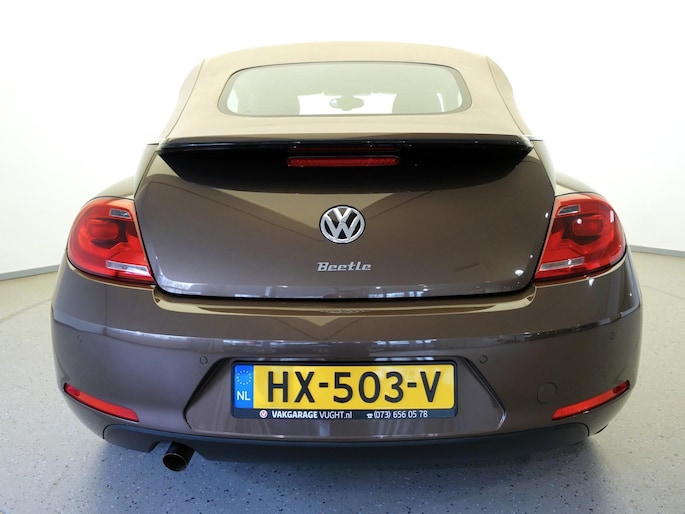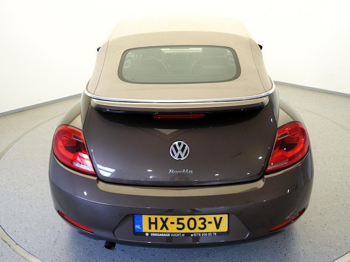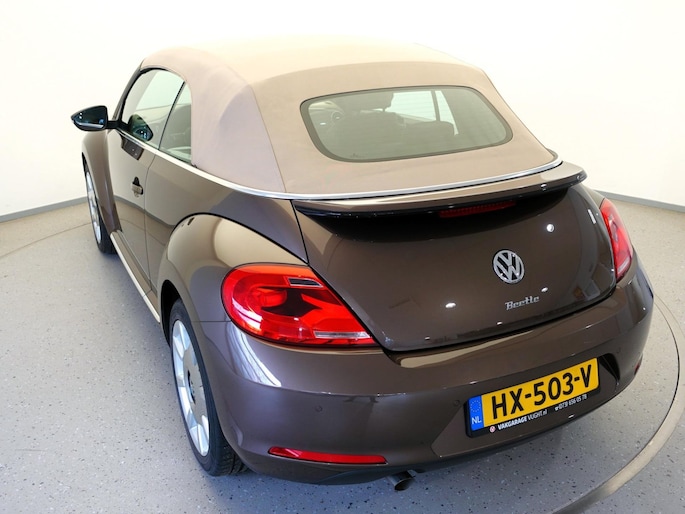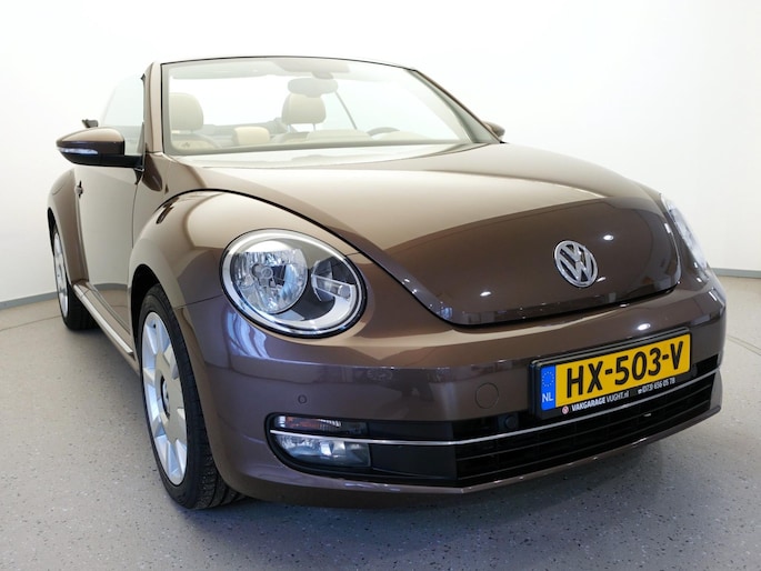 Unieke, van de 1e eigenaresse afkomstige, retro VOLKSWAGEN BEETLE Cabriolet met een 105pk sterke 1.2 TSi benzinemotor, zeer aantrekkelijk lage kilometerstand van slechts 50.000 km in de luxe vintage "Design Edition Executive Plus"-uitvoering met o.a. airco met dual-zone climate control, elektrisch bediend softtop cabriodak, gedistingeerd beige/bruin leder interieur, elektrisch verstelbare en verwarmbare buitenspiegels, afstandsbediende centrale deurvergrendeling met geïntegreerde schakeling van het originele alarmsysteem, origineel "Composition & Discover" multimediasysteem met radio/CD/MP3-speler, 8 speakers, fullmap navigatiesysteem, Bluetooth handsfree telefoon- en audiokoppeling, spraakbediening en USB-, AUX- & SD-card input, in hoogte en lengte verstelbaar, multifunctioneel lederen stuurwiel, in hoogte verstelbare en verwarmbare comfortstoelen met middenarmsteun, licht- en regensensor, automatisch dimmende binnenspiegel, mistlampen en statische bochtverlichting in voorbumper, parkeersensoren voor en achter met displayweergave, 18-inch 70's lichtmetalen velgen met anti-diefstalbeveiliging en reservewiel, origineel windscherm, metallic-lak in retrokleur "Toffee Brown", etc.