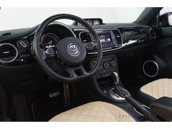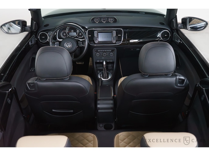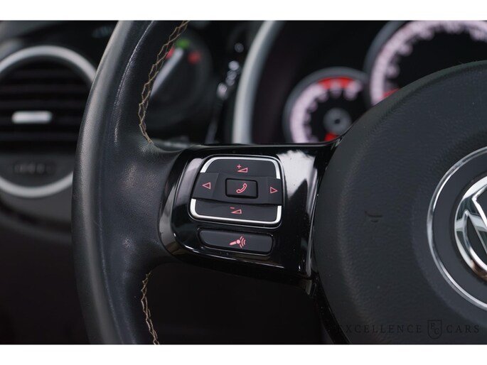 Volkswagen, een merk dat geen toelichting nodig heeft. Met de sportieve R-Line styling is deze Volkswagen Beetle Cabriolet een lust voor het oog. Volkswagen-rijders weten het: een VW is gebouwd voor duurzaamheid en deze Beetle Cabriolet ziet er dan ook uit als nieuw. Een krachtige motor geeft deze auto zijn sportieve prestaties. Dit mag je gerust een luxe uitvoering noemen: een lederen interieur én een elektrisch bedienbare achterklep! Bij de complete uitrusting van deze auto hoort ook stoelverwarming. Als u eenmaal kennis hebt gemaakt met het elektrische cabriodak dan weet u het zeker: bij deze auto is over elk detail nagedacht. In het donker zorgt de xenonverlichting voor een goed zicht op de weg. Bij de uitrusting van deze Volkswagen horen onder meer 19 inch lichtmetalen velgen, sportonderstel, warmtewerend glas, in delen neerklapbare achterbank, verstelbare lendensteunen en verwarmde ruitensproeiers.