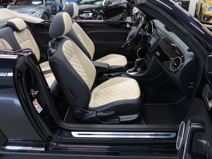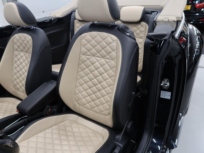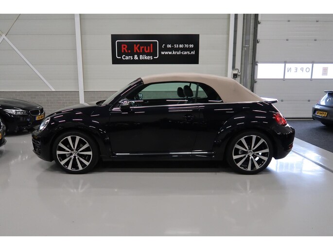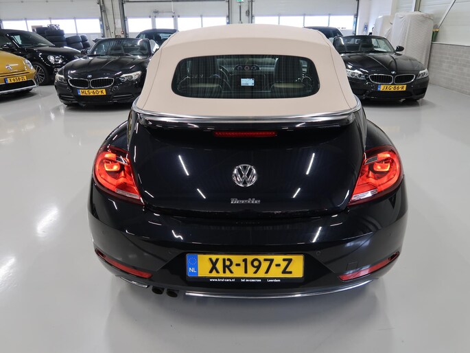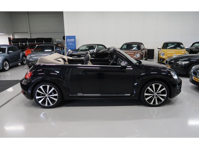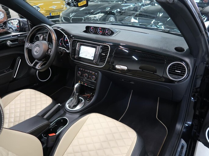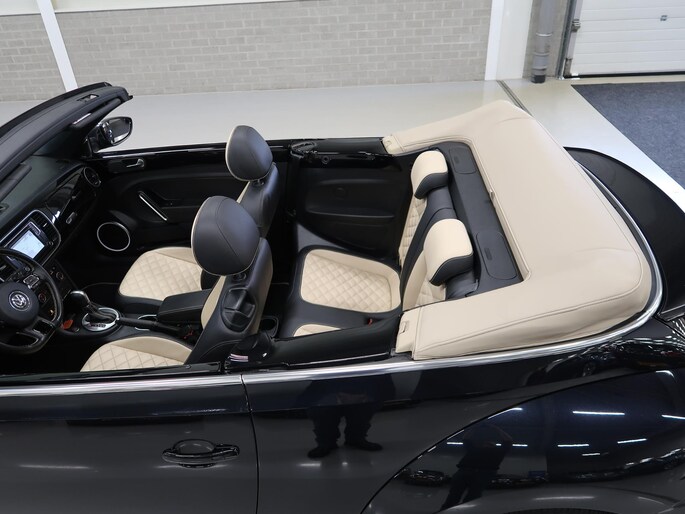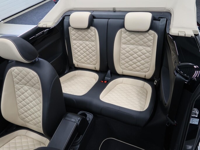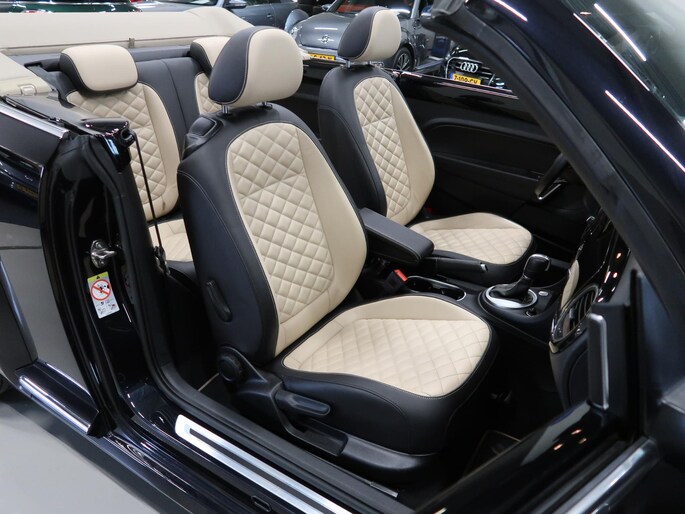 Zeer compleet uitgevoerde Vw Beetle cabrio 1.4 TSI DSG Automaat uit 2018 met 93.804 km. Volledig Vw dealer onderhouden, facturen en onderhoudslijsten zijn aanwezig. Recent onderhoud gehad met compleet nieuwe remmen voor en achter. Zwart metallic met elektrische beige kap, door ons fris geïmpregneerd, zwart interieur met beige accenten, Bentley leder met diamondstitch (ruitjes), 19 inch sportvelgen af fabriek in zeer nette staat, afdekhoes (tonneau cover) voor de cabrioletkap bij geopende toestand, origineel windscherm, achteruitrijcamera en parkeersensoren voor en achter, extra klokjes (meters) op het dashboard, Fender geluidssysteem met verlichte speakerringen, comfortstoelen met stoelverwarming, isofix, klimaatgeregelde airco links/rechts instelbaar, mistlampen voor, app connect, navigatie Discover Media met de laatste kaartupdate, voice control, multifunctioneel stuurwiel, cruise control, bluetooth voor telefoon en muziek, 4 elektrische ramen, elektrische buitenspiegels verwarmbaar en inklapbaar. Kijk voor alle 92 foto's op onze website. We hebben doorlopend meer dan 30 cabrio's op voorraad waarvan 15 Beetles.
