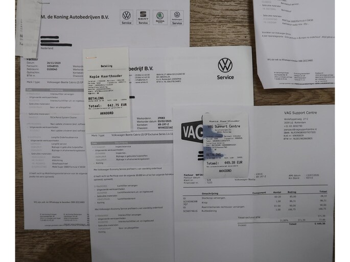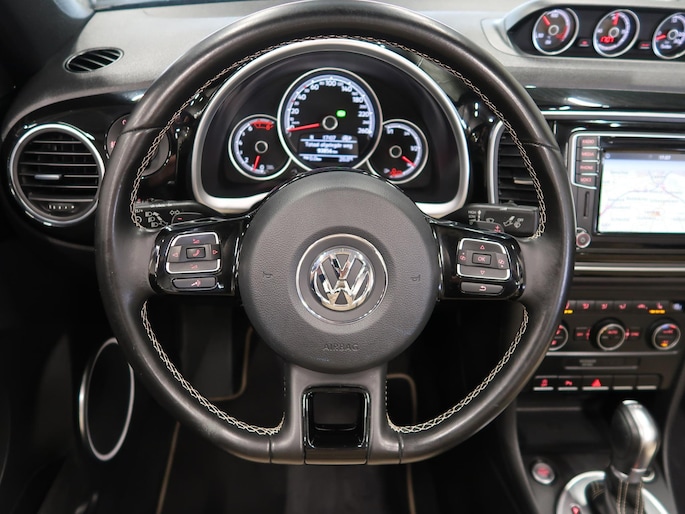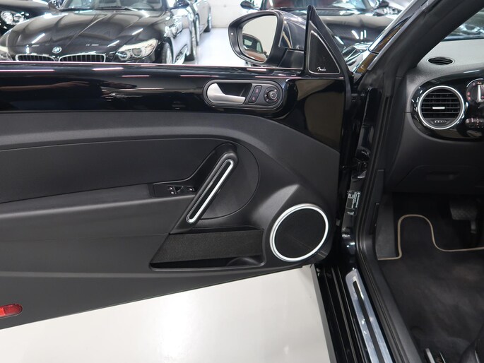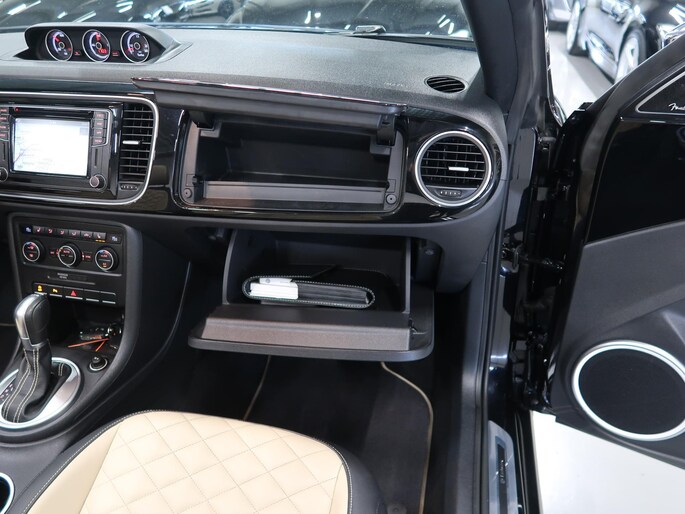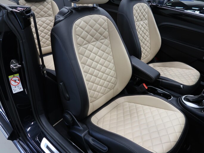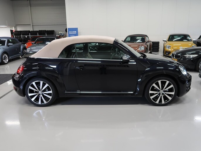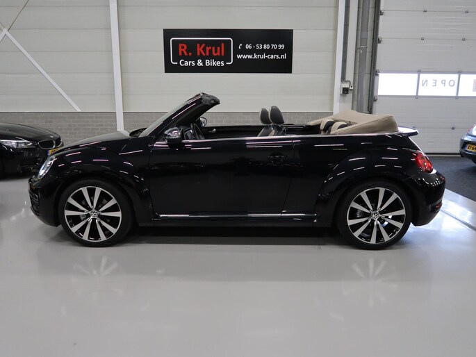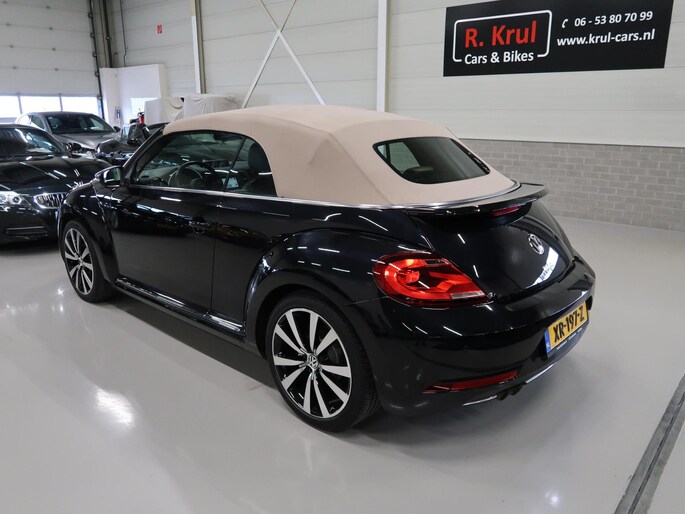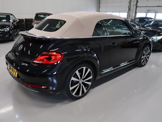 Zeer compleet uitgevoerde Vw Beetle cabrio 1.4 TSI DSG Automaat uit 2018 met 93.804 km. Volledig Vw dealer onderhouden, facturen en onderhoudslijsten zijn aanwezig. Recent onderhoud gehad met compleet nieuwe remmen voor en achter. Zwart metallic met elektrische beige kap, door ons fris geïmpregneerd, zwart interieur met beige accenten, Bentley leder met diamondstitch (ruitjes), 19 inch sportvelgen af fabriek in zeer nette staat, afdekhoes (tonneau cover) voor de cabrioletkap bij geopende toestand, origineel windscherm, achteruitrijcamera en parkeersensoren voor en achter, extra klokjes (meters) op het dashboard, Fender geluidssysteem met verlichte speakerringen, comfortstoelen met stoelverwarming, isofix, klimaatgeregelde airco links/rechts instelbaar, mistlampen voor, app connect, navigatie Discover Media met de laatste kaartupdate, voice control, multifunctioneel stuurwiel, cruise control, bluetooth voor telefoon en muziek, 4 elektrische ramen, elektrische buitenspiegels verwarmbaar en inklapbaar. Kijk voor alle 92 foto's op onze website. We hebben doorlopend meer dan 30 cabrio's op voorraad waarvan 15 Beetles.