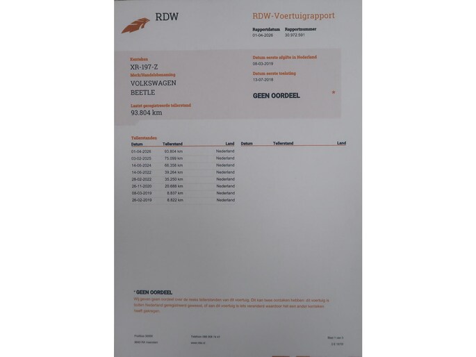 - Standaard (inbegrepen): Wettelijke garantie, geldige APK, en RDW-leges.
