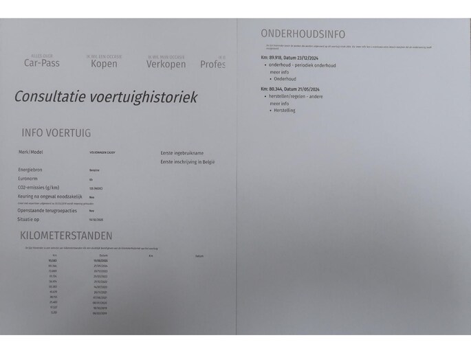 Nationale Auto Pas en onderhoudsgeschiedenis aanwezig