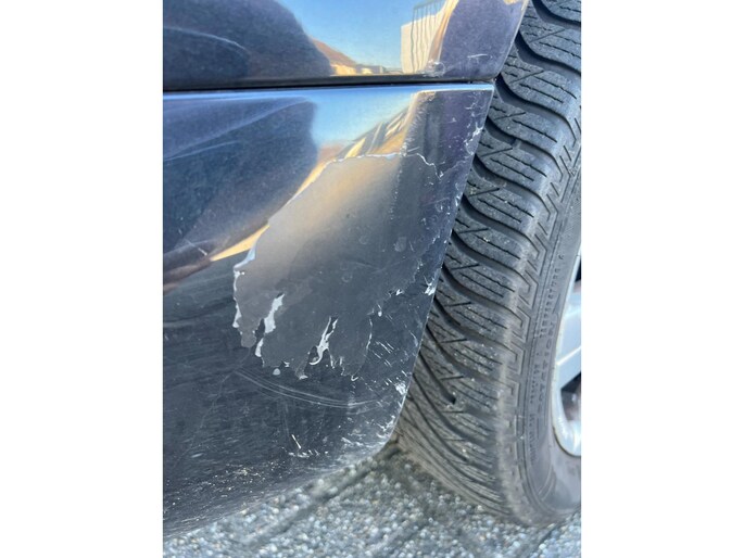 - tegen een tak aangereden , zie foto zijkant schuifdeur.