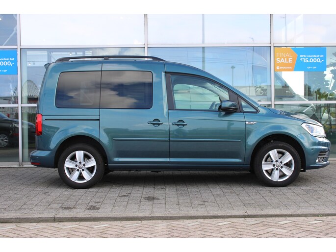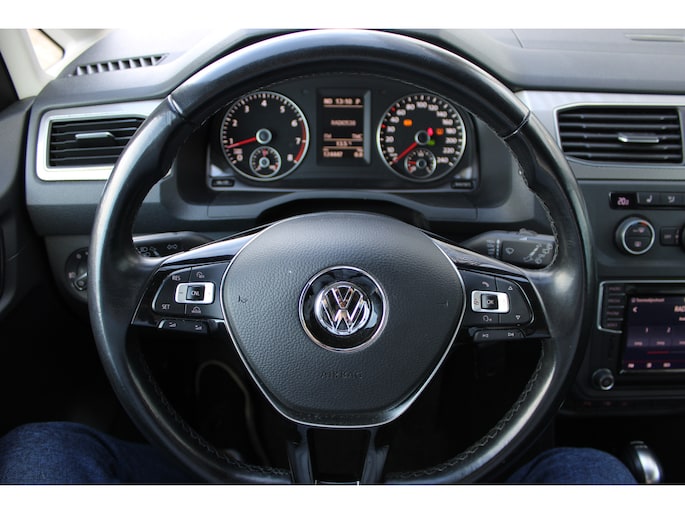 Vorm, constructie, prestaties en techniek... Duitse auto's behoren tot de beste van de wereld, en dat is niet voor niks. Niet voor niets is de vraag naar gebruikte Volkswagens zo groot, want de kwaliteit staat ook na een aantal jaren nog buiten kijf, zoals aan deze Caddy duidelijk te zien is. De aandrijving komt voor rekening van een benzinemotor en een automatische transmissie. Donkere en koude maanden? U zit altijd goed dankzij de stoelverwarming. Met de krachtige xenonverlichting heeft u optimaal zicht in het donker. Geen achterportier bij deze Volkswagen Caddy. In plaats daarvan een schuifdeur, die in- en uitstappen vergemakkelijkt. U wordt in deze auto ook getrakteerd op 16 inch lichtmetalen velgen, warmtewerend glas, in delen neerklapbare achterbank en snelheidsafhankelijke stuurbekrachtiging. Inparkeren? Met de achteruitrijcamera heeft u er geen omkijken meer naar! De auto is voorzien van een trekhaak en is een uitstekende caravantrekker. Er is geen bestemming die het aanwezige full map navigatiesysteem niet kent. Dat rijdt lekker! U verwacht natuurlijk automatische airconditioning in deze auto, en die is er dan ook. Voor de audiobediening hoeft u uw ogen geen seconde van de weg te houden. Alle functies bevinden zich op het stuur, onder uw vingertoppen. Met regensensor, cruise control, centrale deurvergrendeling met afstandsbediening, bagage afdekhoes en boordcomputer is deze Volkswagen helemaal compleet. In de Volkswagen Caddy heeft uw veiligheid en die van uw omgeving prioriteit. Een belangrijke bijdrage aan de veiligheid in deze auto is de vermoeidheidsherkenning, die waarneemt wanneer de bestuurder tekenen van vermoeidheid vertoont. De veiligheid van deze auto wordt verder verhoogd door hill hold functie en bandenspanningcontrolesysteem. We kunnen ons voorstellen dat een proefrit wilt maken met deze auto. Belt u ons snel?
