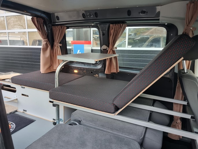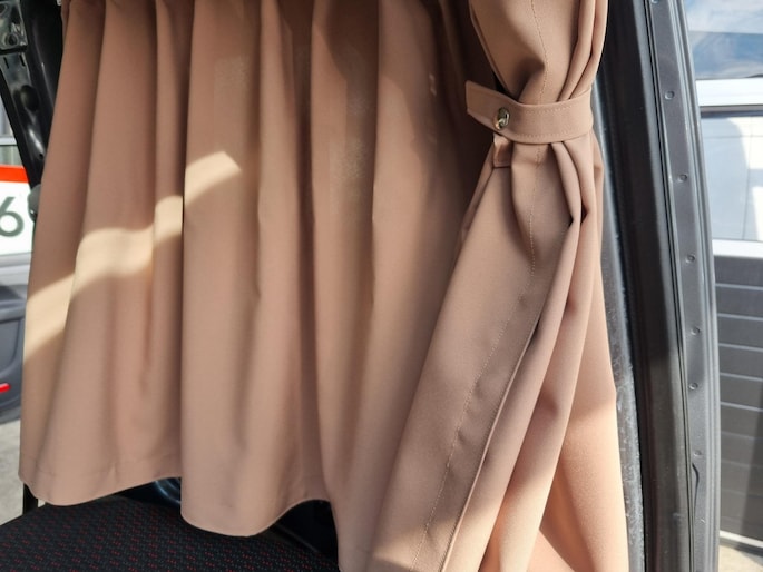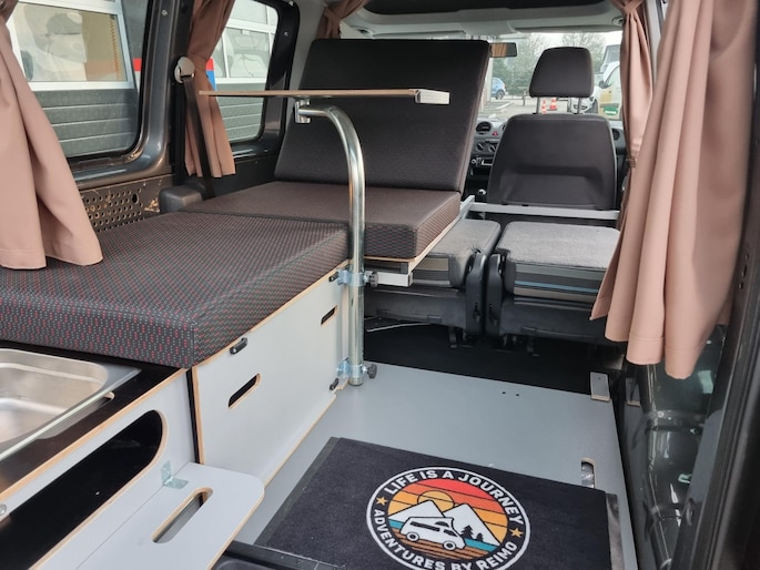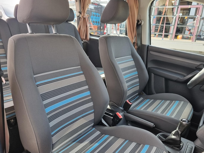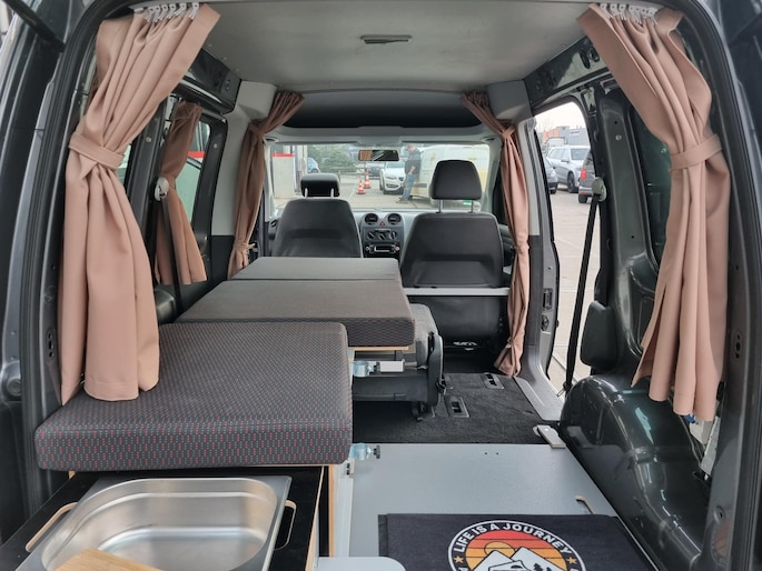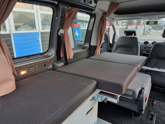 Om te verduisteren en voor de knusheid is deze Caddy voorzien van op maat gemaakte gordijnen.