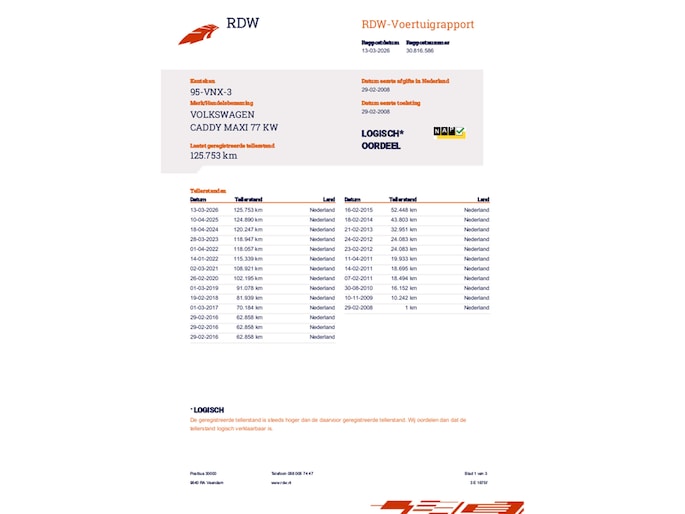 De afgelezen kilometerstand kunnen wij enkel garanderen bij een logisch NAP rapport.