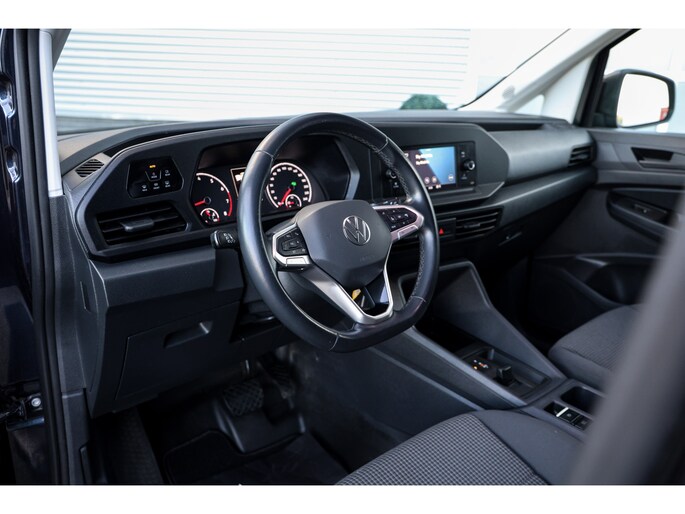 Zeer nette en complete Volkswagen Caddy Cargo Maxi 1.5TSI Automaat benzine in een prachtige blauw metallic kleur met een gecontroleerde kilometerstand van slechts 49.680 km en voorzien van vele opties waaronder: airco, cruise control, parkeersensoren voor, verwarmbare voorruit, armsteun, elektrische ramen, elektrisch verstelbare buitenspiegels, achterdeuren, zijschuifdeur rechts, vermoeidheidsherkenning, schakelflippers aan het stuur, boordcomputer, abs, etc.