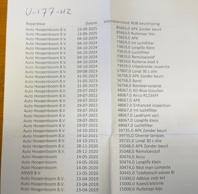- Onderhoudsboekje aanwezig