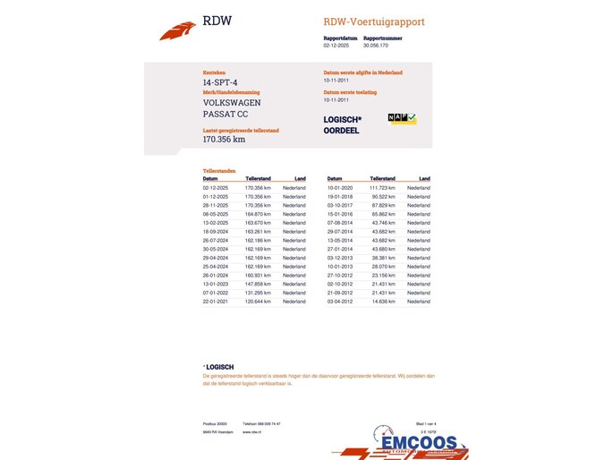 De Passat CC is een gebruikte auto met volledige onderhoudshistorie.