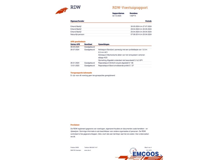 De laatste grote servicebeurt was op 17 februari 2025 bij 163.814 kilometer.