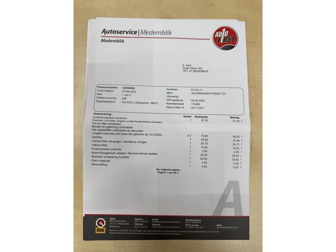 Wegenbelasting/3mnd € 226 - € 247