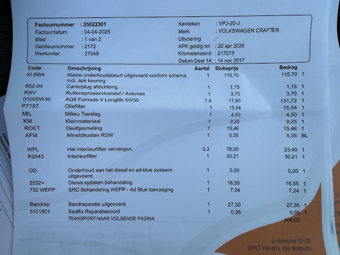 | Wegenbelasting/3mnd | € 183 - € 183 |