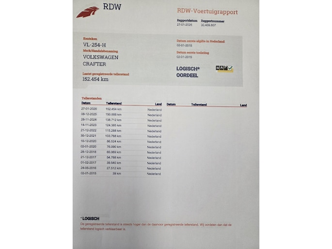 Kilometerstand gecontroleerd
