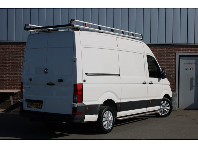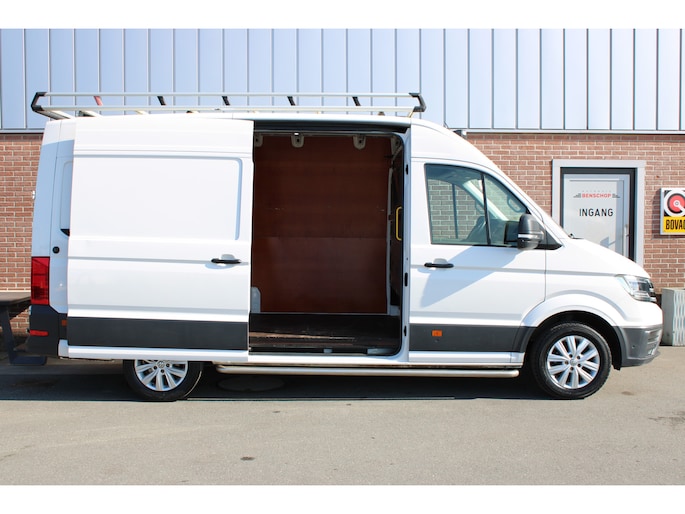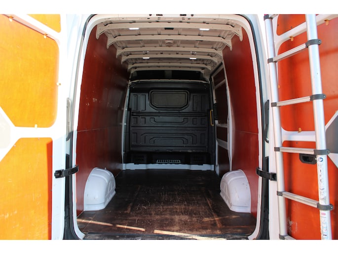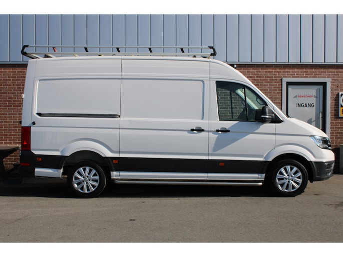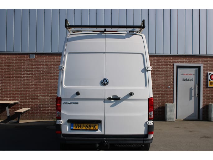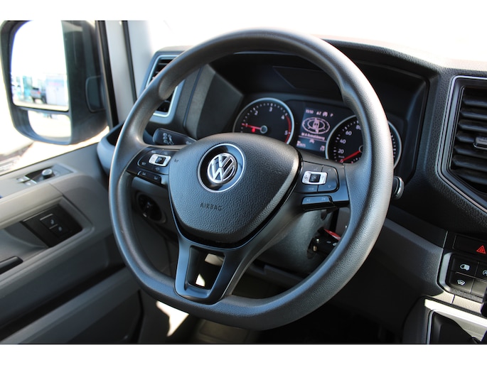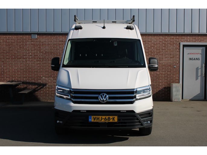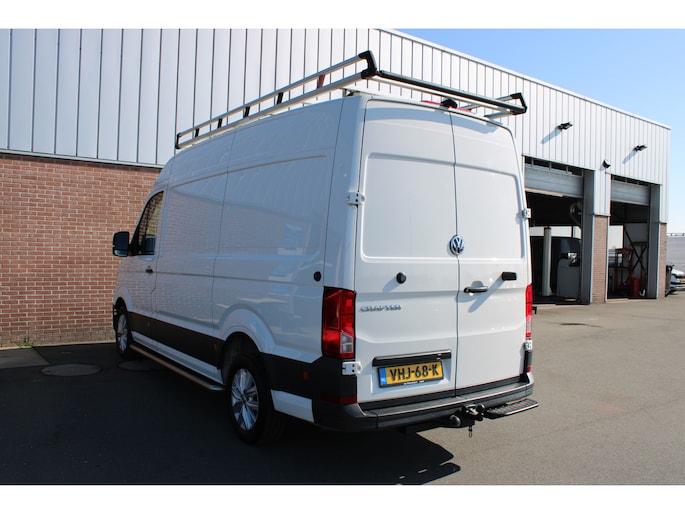 Een Volkswagen Crafter 35 met originele 177PK motor met automaat en o.a. Led koplampen, trekhaak, standkachel, achterruitrijcamera, app-connect en betimmering.