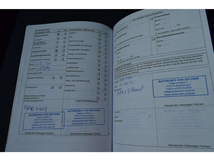 Onderhoudsboekjes: Aanwezig